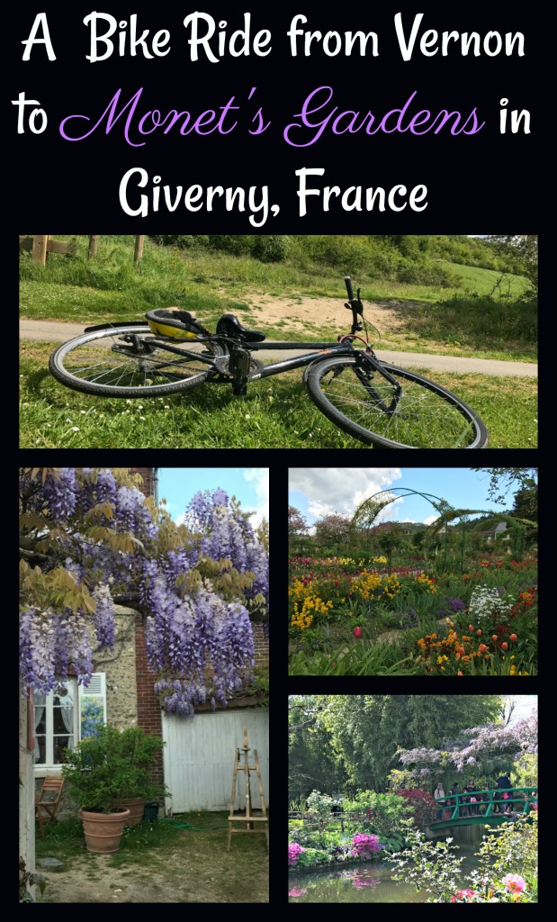 The 3-mile bike path is well-marked and will first lead you through the medieval town of Vernon either in bike lanes or along the sidewalk. You will cross over the River Seine with gorgeous views and the remnants of a historic bridge. The only part of the trail that confused me was right over the river. But there are signs, so keep following the ones that say “Giverny bike path” even though it seems to be taking you in the wrong direction. Watch the above YouTube video to see what the path looks like.